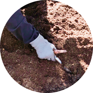 仲間と協力し、大きな庭を整える。